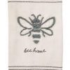 Welcome people to your home with this fleur de lis hand towel. The woven stripe flour sack towel features a chunky knot icons and printed sentiment. The center of the towel features a bee design. Under the fleur de lis design, the towel features the phrase “welcome”. The towel also features stripes at the bottom.